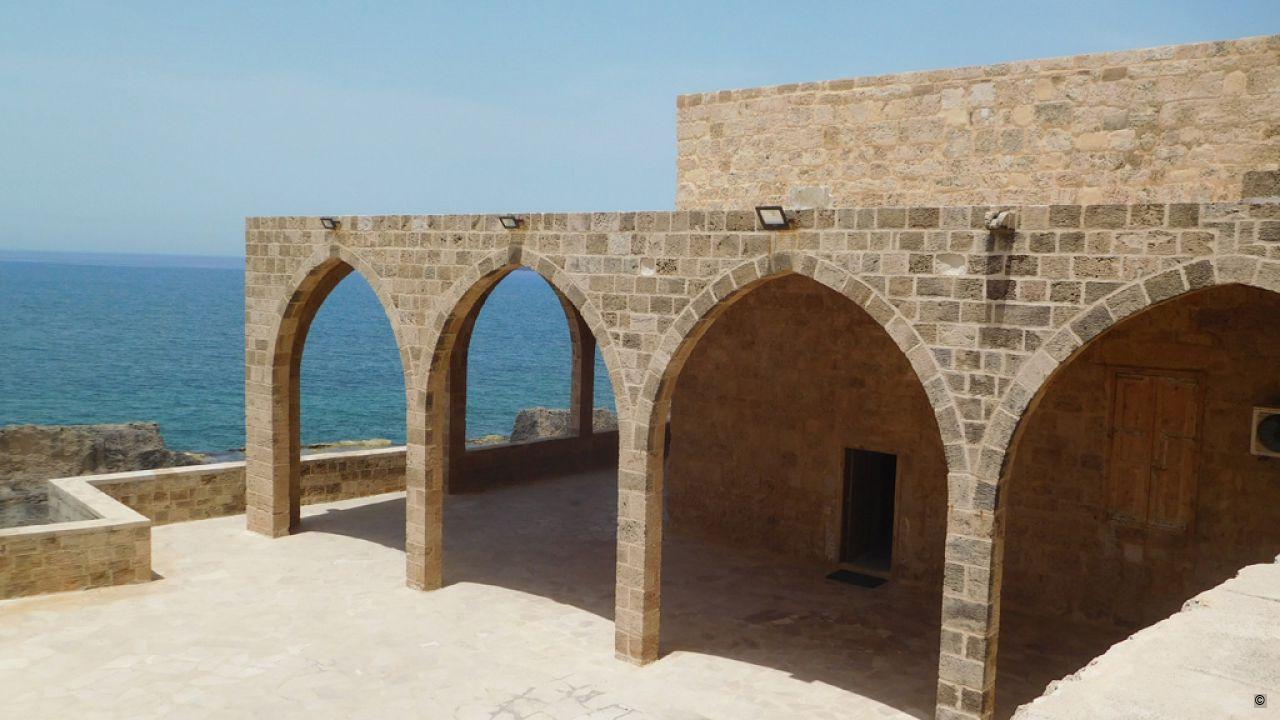 This small Greek Orthodox Church overlooks the Phoenician sea wall. It is built with Batroun sandstone and using single-barrel vaulting from East to West.