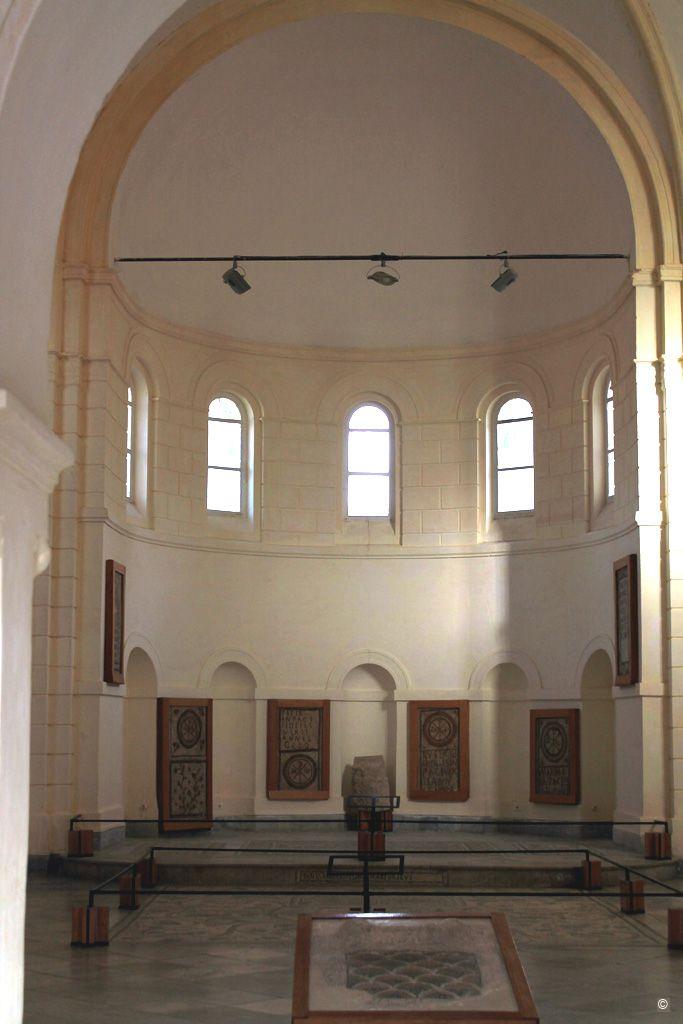 The building, whose entrance sits underneath a clock tower, is built in the shape of a Latin cross, with an apse at the end where the choir can be found. The numerous important discoveries in the region in 1901 and 1905 encouraged the directors, the Archbishop of Carthage and the Société Franco-Africaine d’Enfidha to decorate the walls of the cathedral with an impressive series of Christian mosaics, all with a funerary or martyrologic theme. The museum houses an important collection of ancient ceramics. A number of pagan funerary or votive steles from local archaeological sites can also be found in the museum.